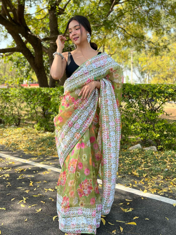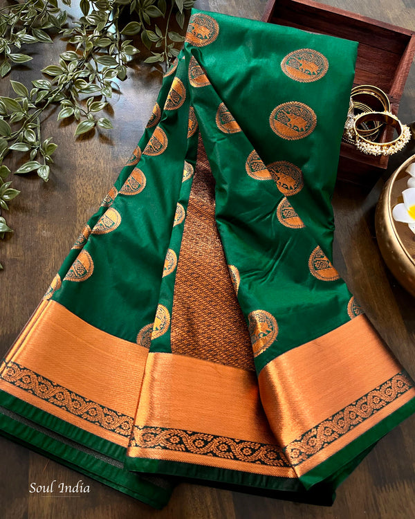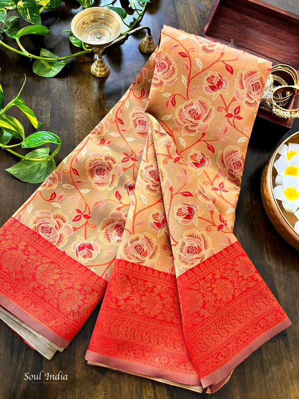 Contemporary Banarasi South Silk With Woven Floral Motifs - Golden