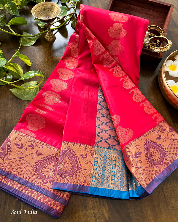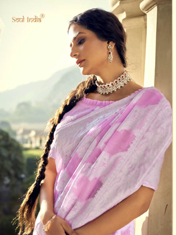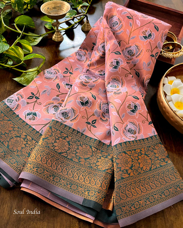 Contemporary Banarasi South Silk With Woven Floral Motifs - Light Pink